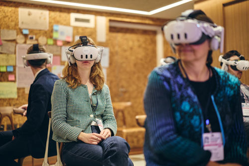 But communications from you organizers aren’t yet doing it. The opening image of two people in VR masks has no visual message about connecting those people with protection of the weak, kindliness, fellowship and so on. The image is of two people not connected to each other, nor to us the viewers of the image.